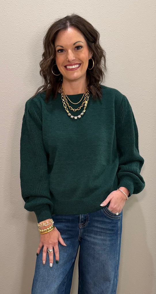 Hunter Green Ribbed Puff Sleeve