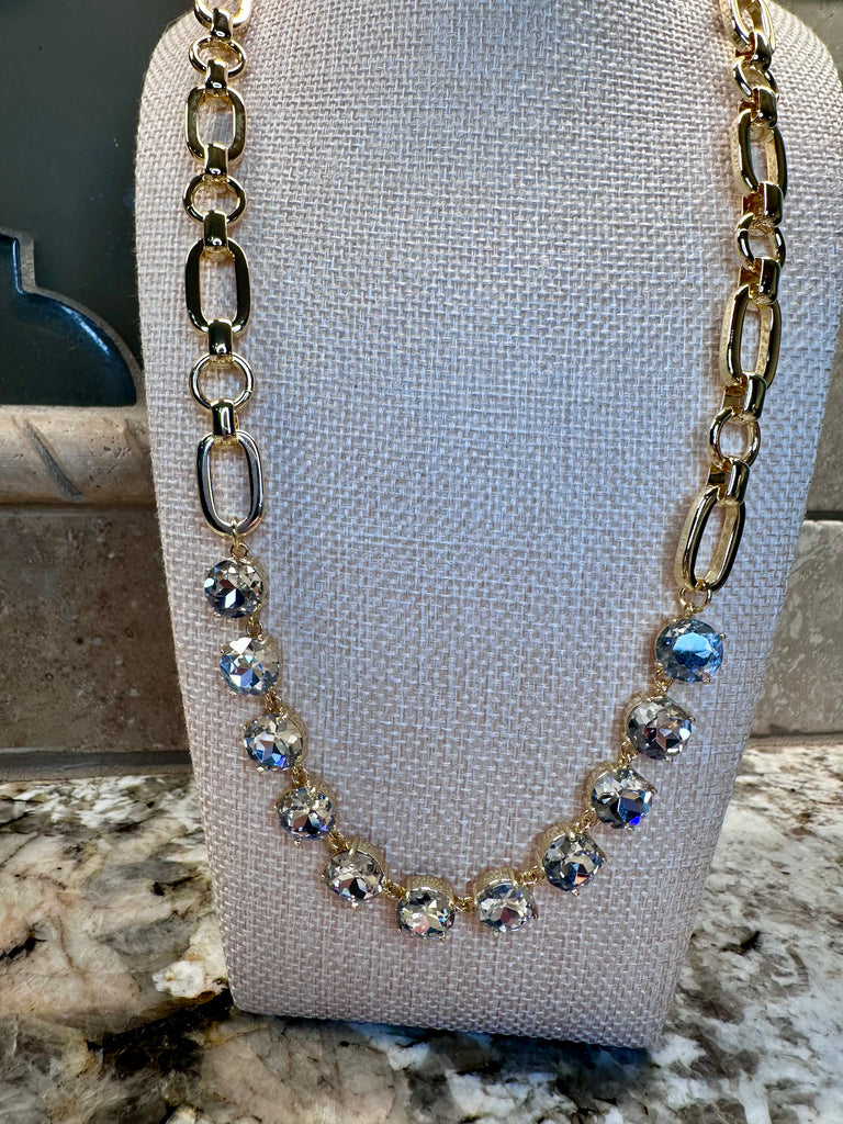 Gold Chain Necklace w/ Crystal Stones - 3 Styles