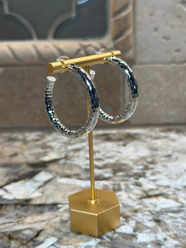 Silver Textured Hoop Earrings