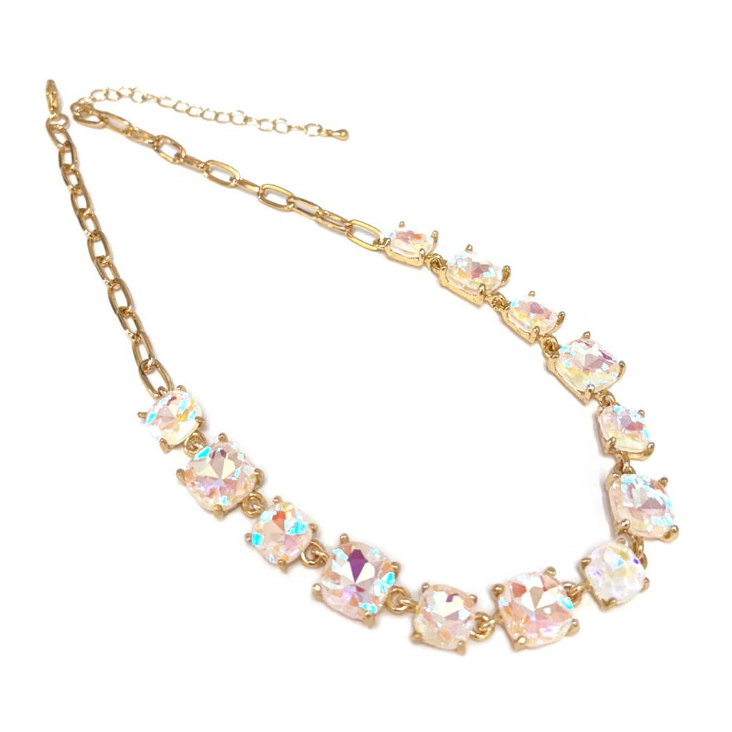 Cushion Cut Square Glass Crystal Linked Chain Necklace
