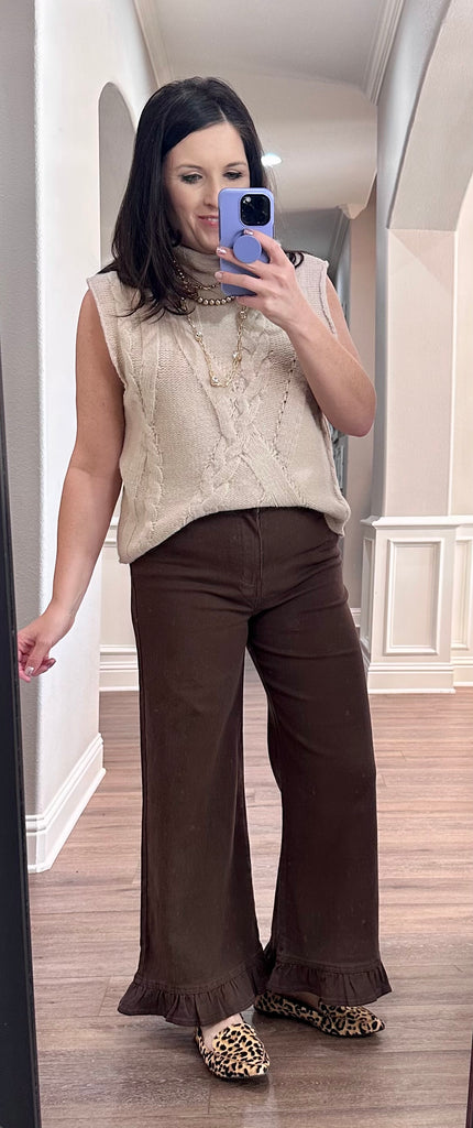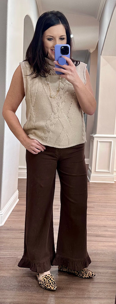Oatmeal Cable Knit Sleeveless Sweater Top