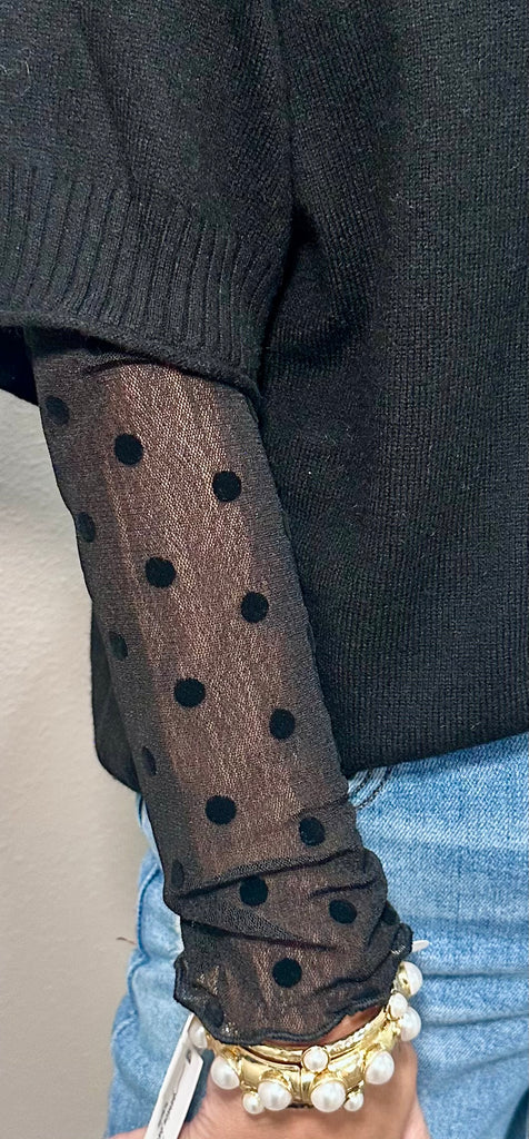 Black Polka Dot Mesh Long Sleeve