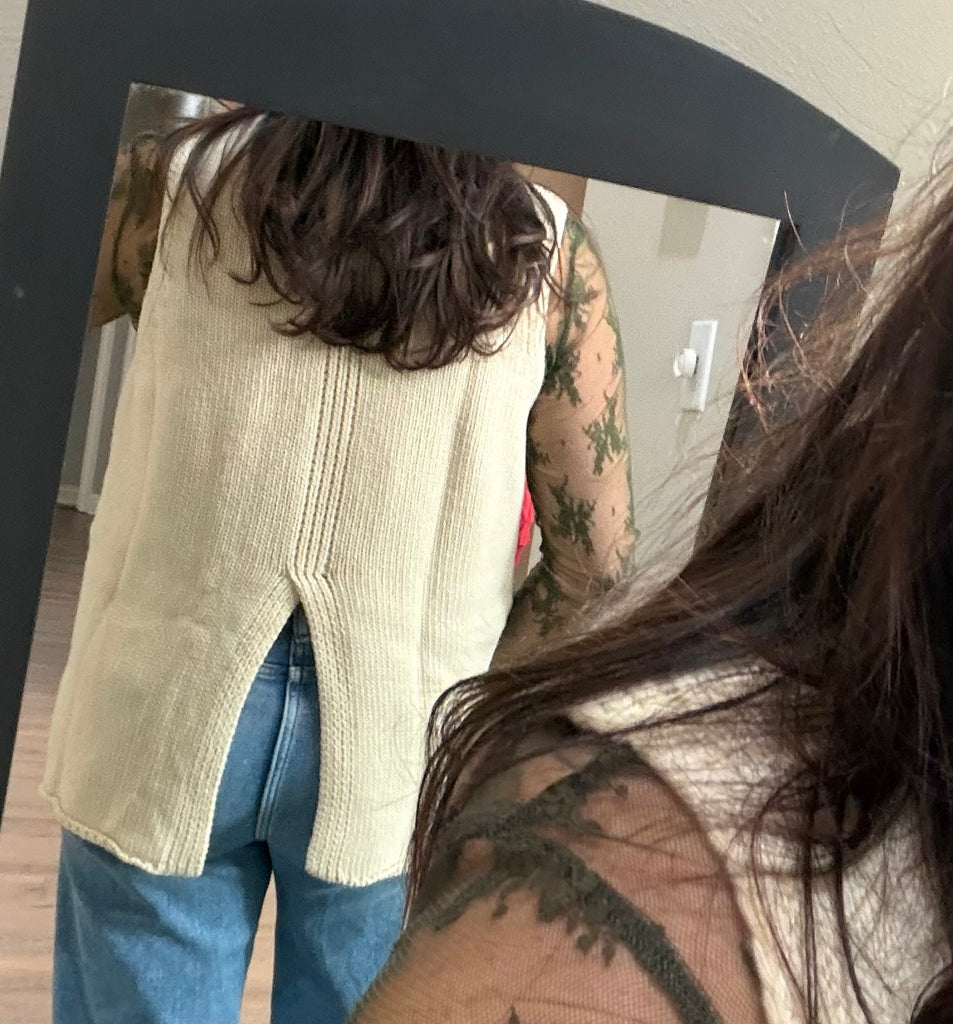 Cream Knit Sweater Vest w/ Split Back Detailing