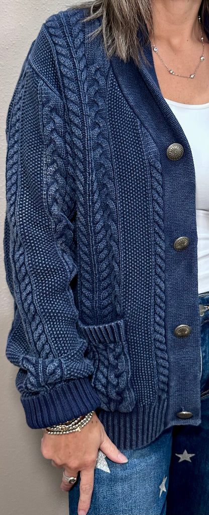 Denim Blue Corded Sweater Cardigan w/ Concho Buttons
