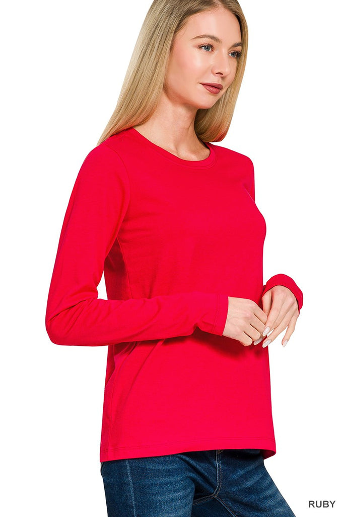 Long Sleeve Cotton Crew Neck Basic Tee - 2 COLORS