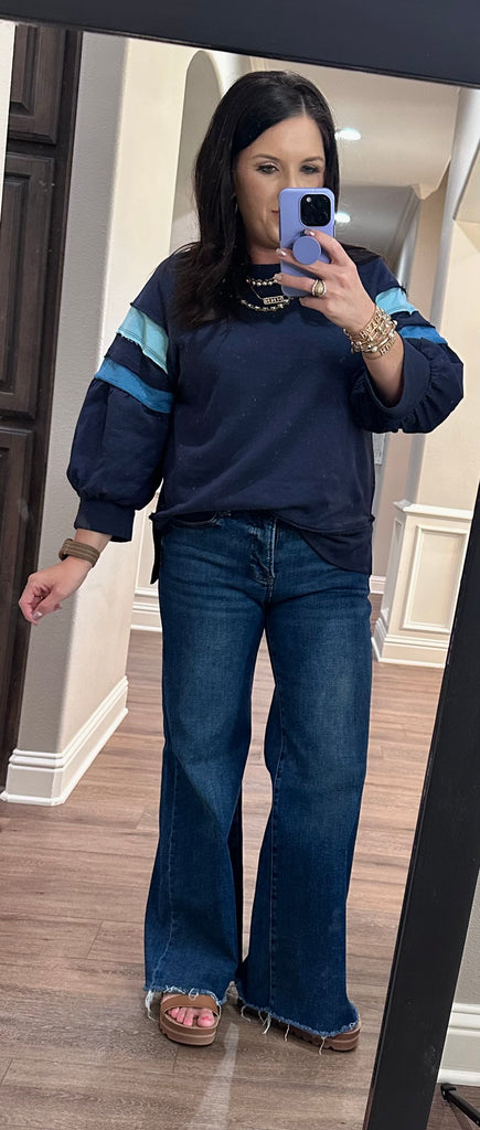 Blue Colorblock Raglan 3/4 Sleeve Top