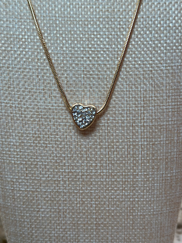 Small Crystal Heart Gold Chain Necklace